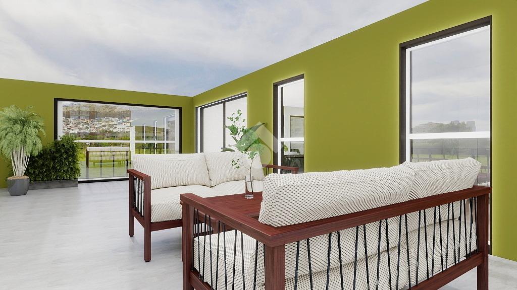 Entrando troviamo, ad accoglierci, un ampio e luminoso soggiorno con angolo cottura e accesso ad un terrazzo di proprietà di circa 74 mq.