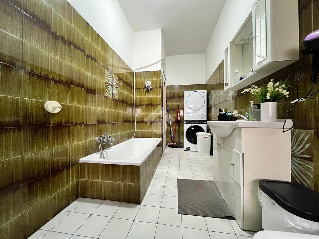 Il bagno, particolarmente spazioso e finestrato, è dotato sia di vasca che di doccia, garantendo comfort e praticità.