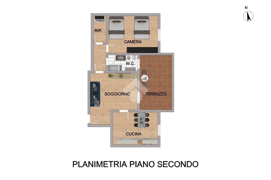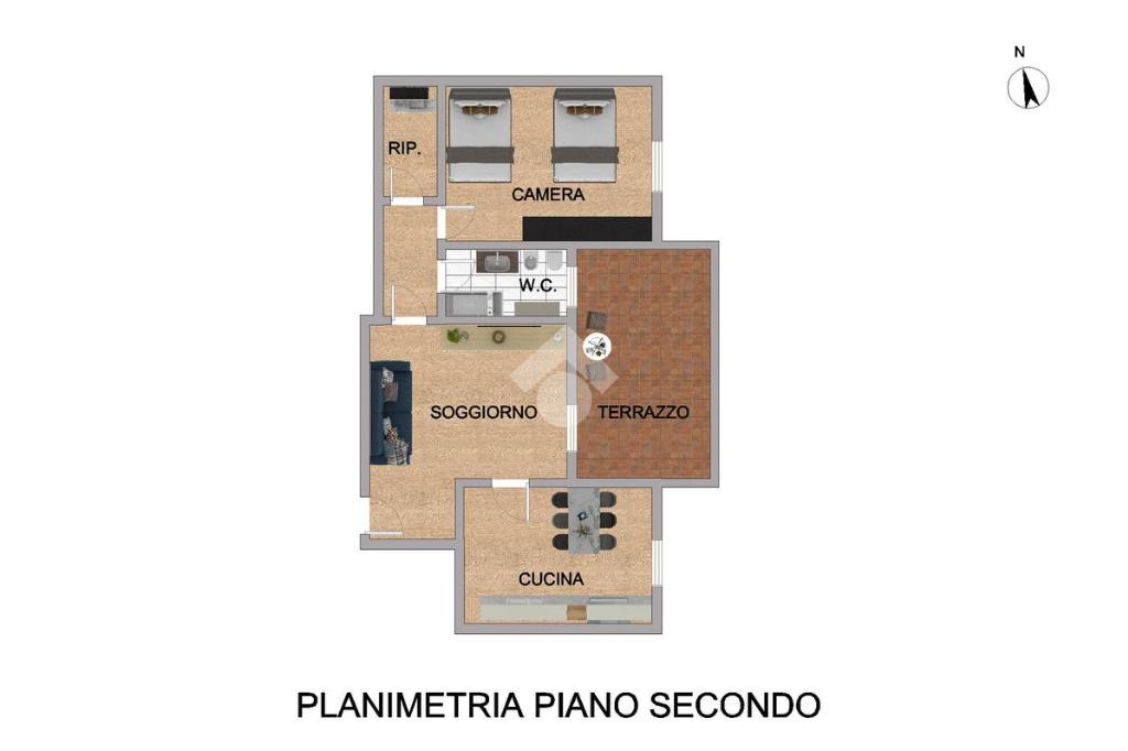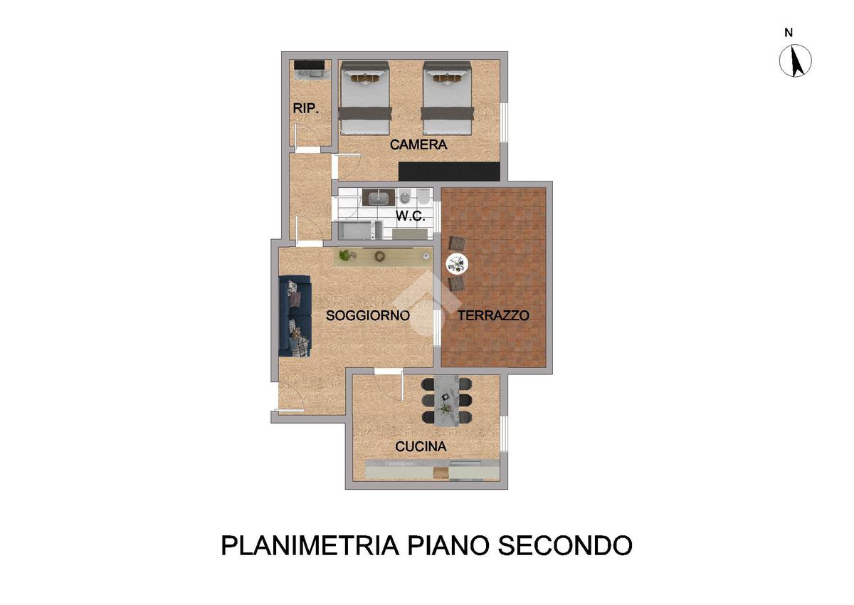 L’immobile si trova al secondo e ultimo piano di un contesto privo di ascensore ed è composto da soggiorno, cucina abitabile, ampio terrazzo.
